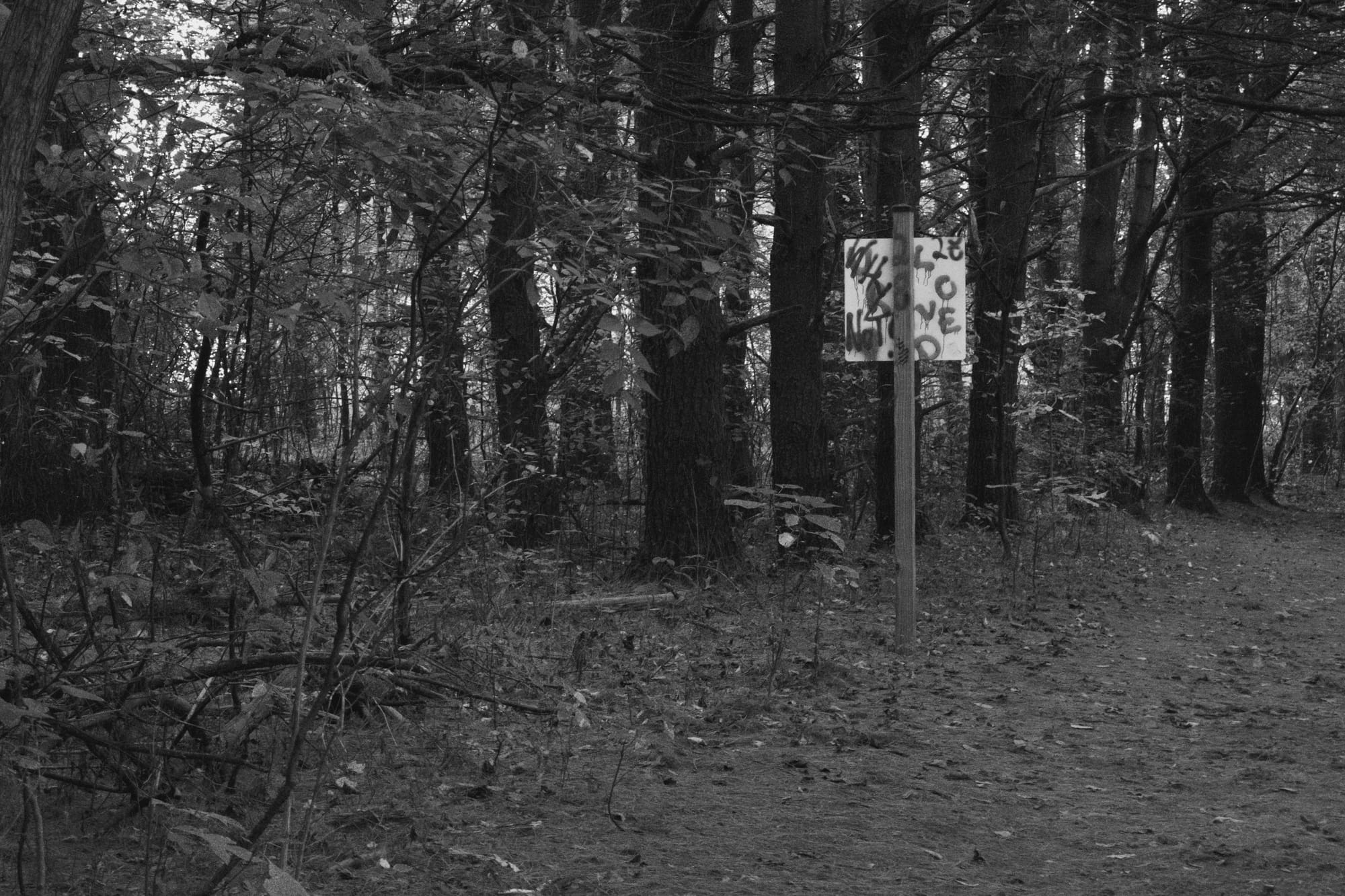 You spot copses of dead trees peppering the trailside, violently thrust into each other like highway pileups. You recall a documentary about Bigfoot that you watched. You really hope that the Figure is a Bigfoot. Bigfoots - feet? - cannot be transphobic, right?