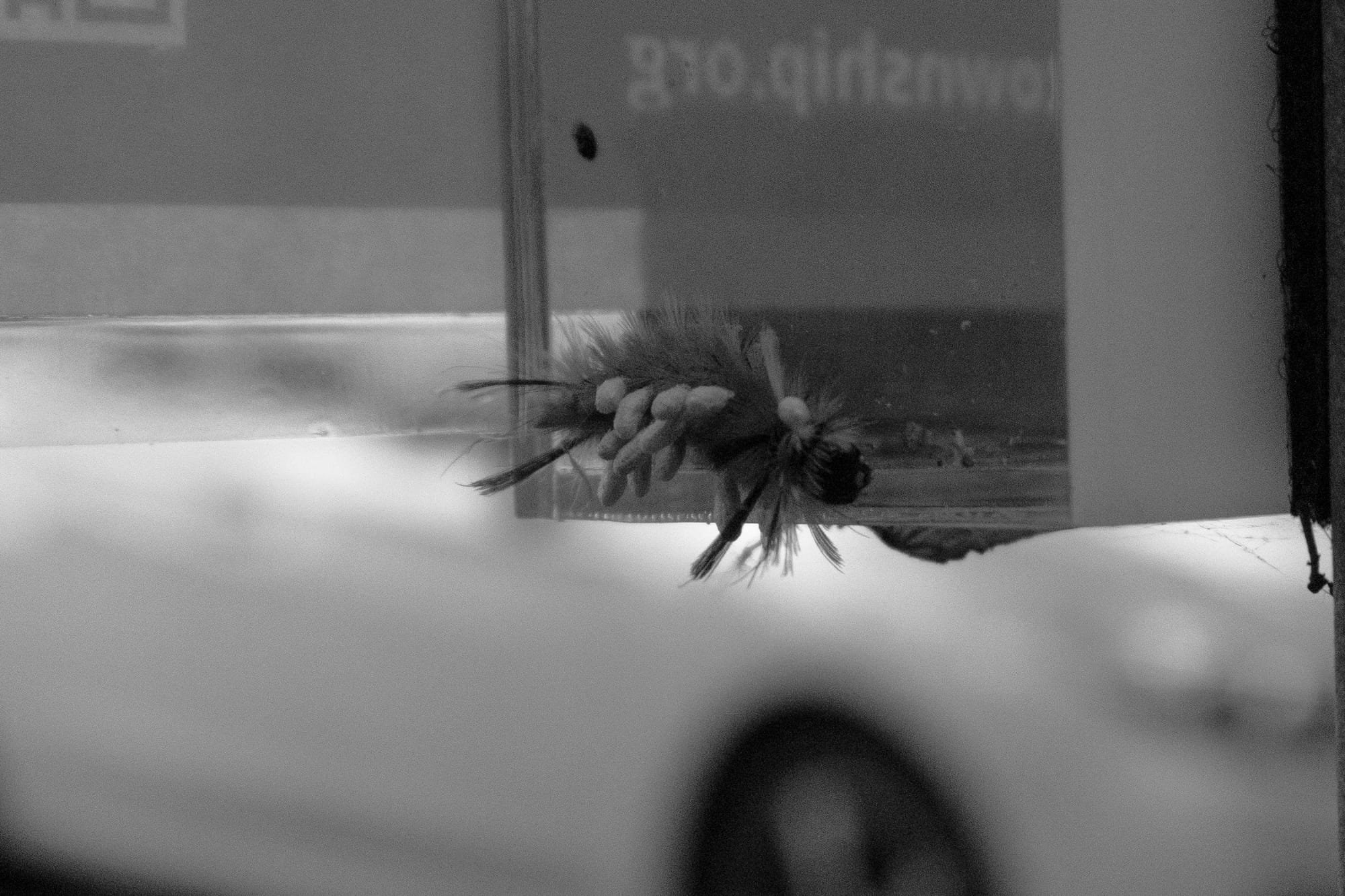 Exiting the woods, you see the parking lot is now almost completely full. The day has started. You see a group of hikers weighing their packs down with sandbags. Before you get in your car, you spot a caterpillar corpse. Fruiting fungal bodies burst forth from its rotten exterior.