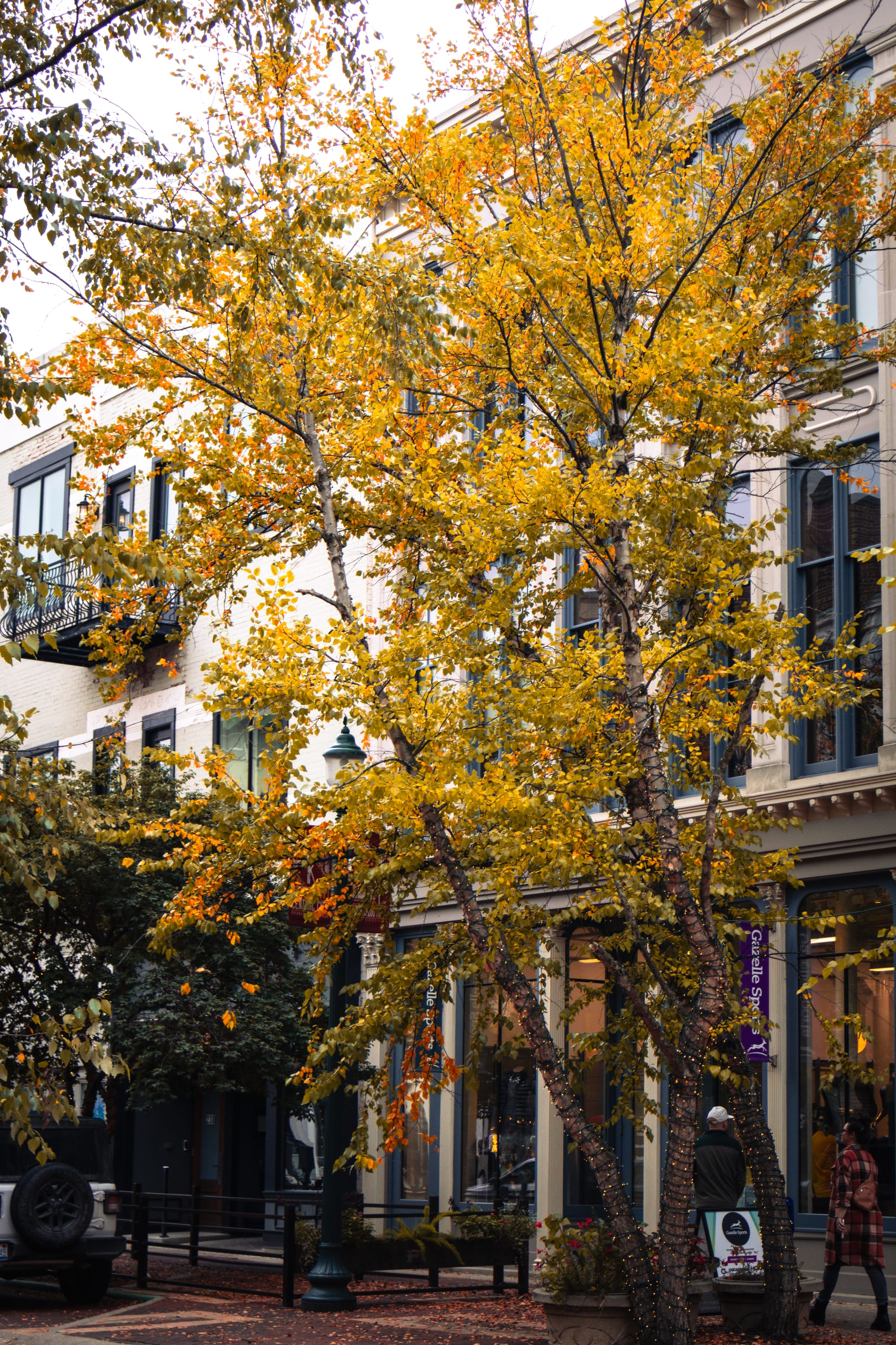 Crisp autumn air nips at the tip of your nose and you walk through downtown.